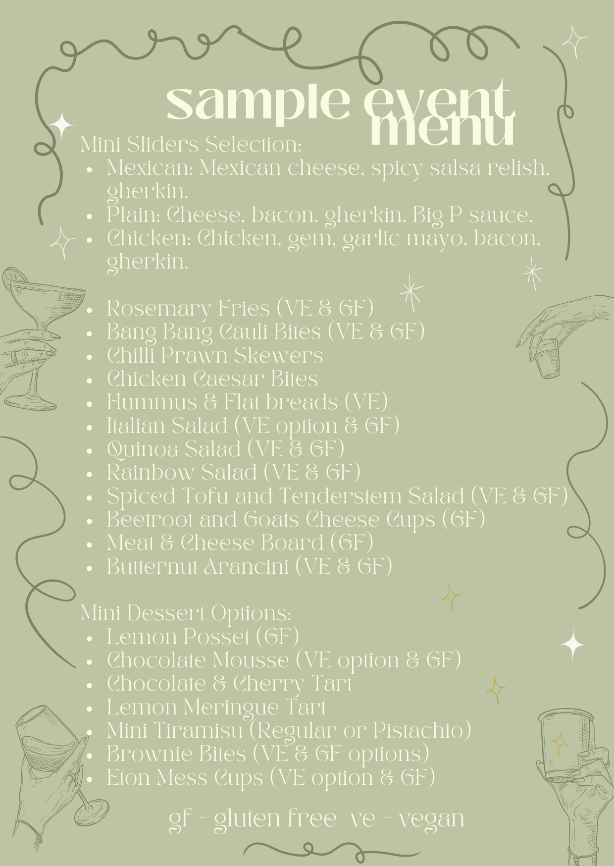 We will work with you to create a menu fitting for your event. Prices are based on per head & are menu dependant. Our sample menu is a good example of the style of food we offer with dishes that we do frequently for our grazing tables. We can work to any budget and that will be reflected in the dishes offered.